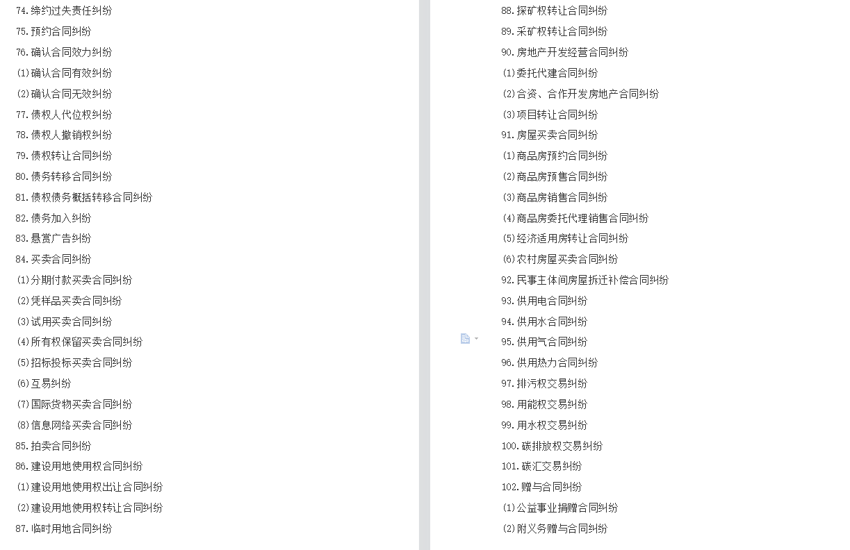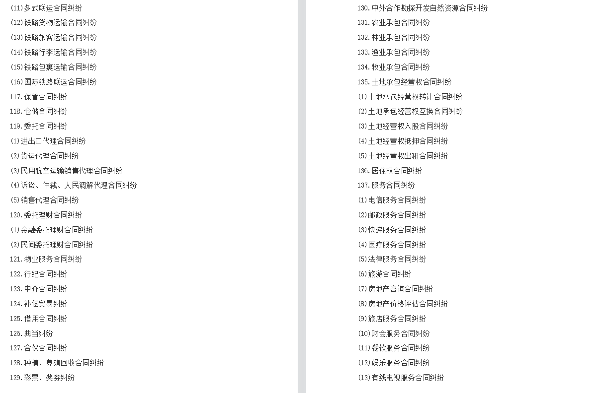 民事案件案由规定