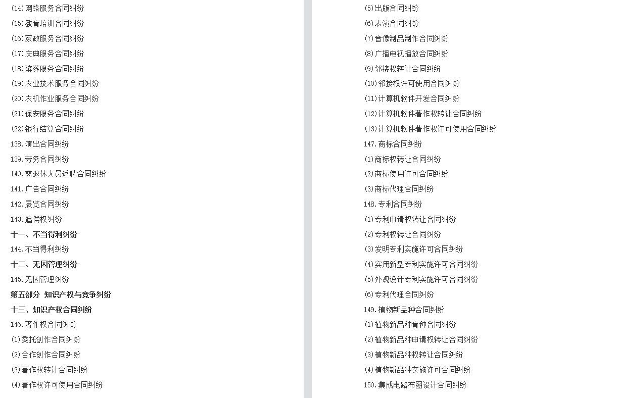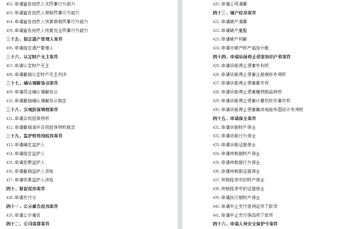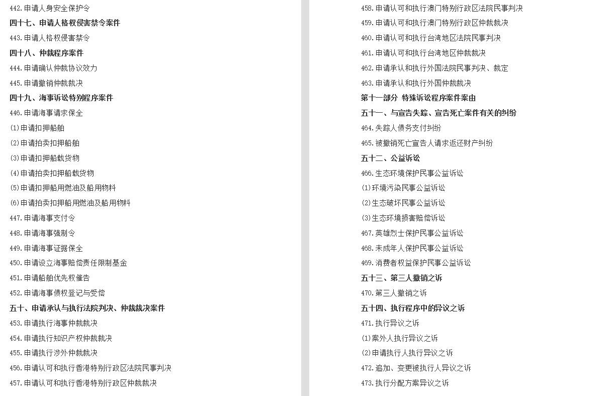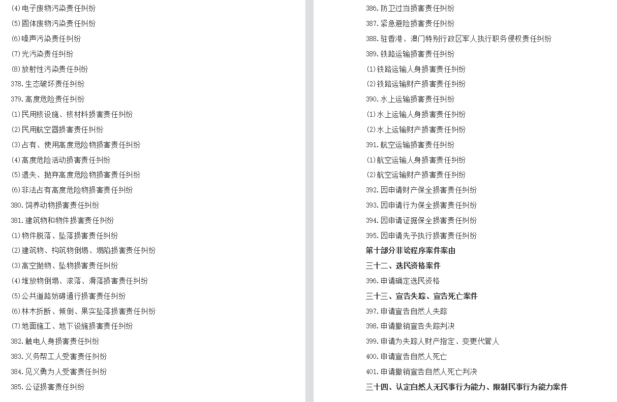为了正确适用法律,统一确定案由,根据《中华人民共和国民法典》《中华人民共和国民事诉讼法》等法律规定,结合人民法院民事审判工作实际情况,对民事案件案由规定如下: