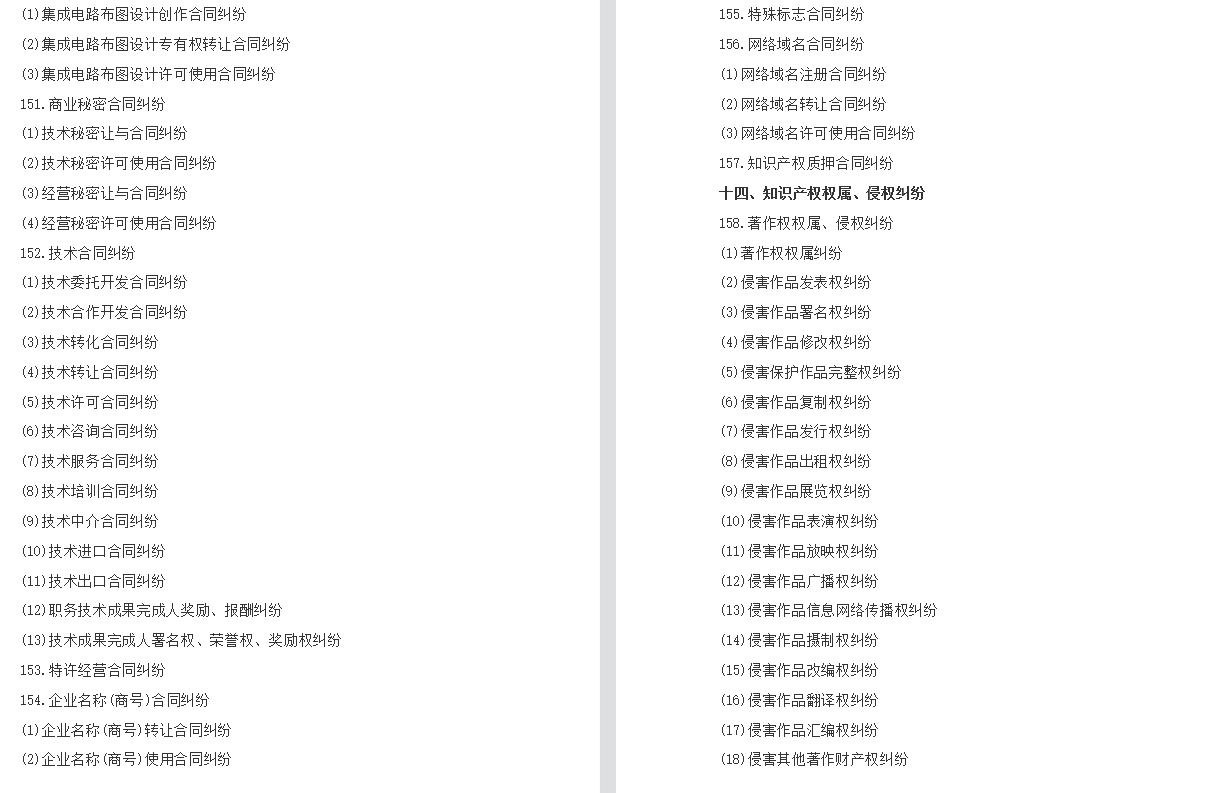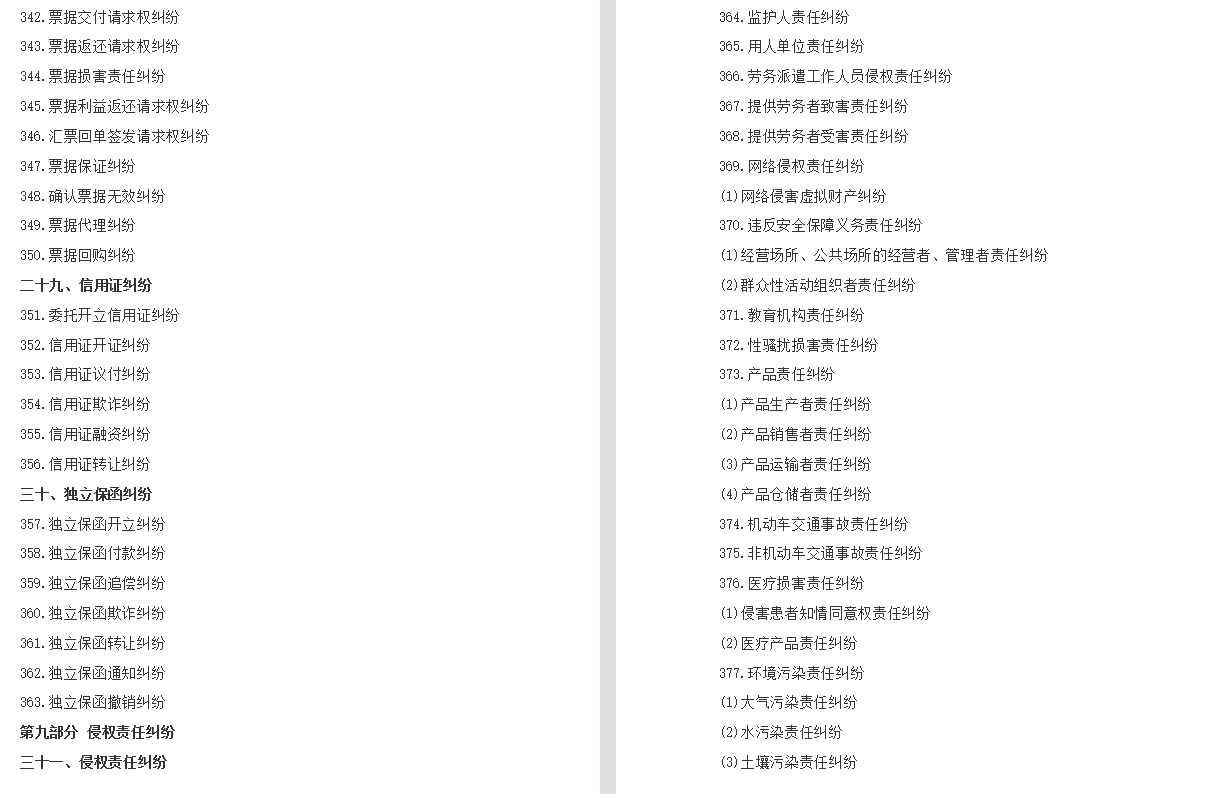 民事案件案由规定