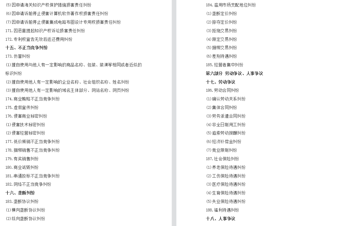 为了正确适用法律,统一确定案由,根据《中华人民共和国民法典》《中华人民共和国民事诉讼法》等法律规定,结合人民法院民事审判工作实际情况,对民事案件案由规定如下: